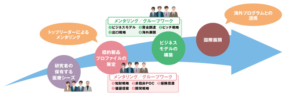 - 臨床開発からビジネスモデルまで、海外事業も含め豊富なビジネス経験を有するメンターを多数起用
